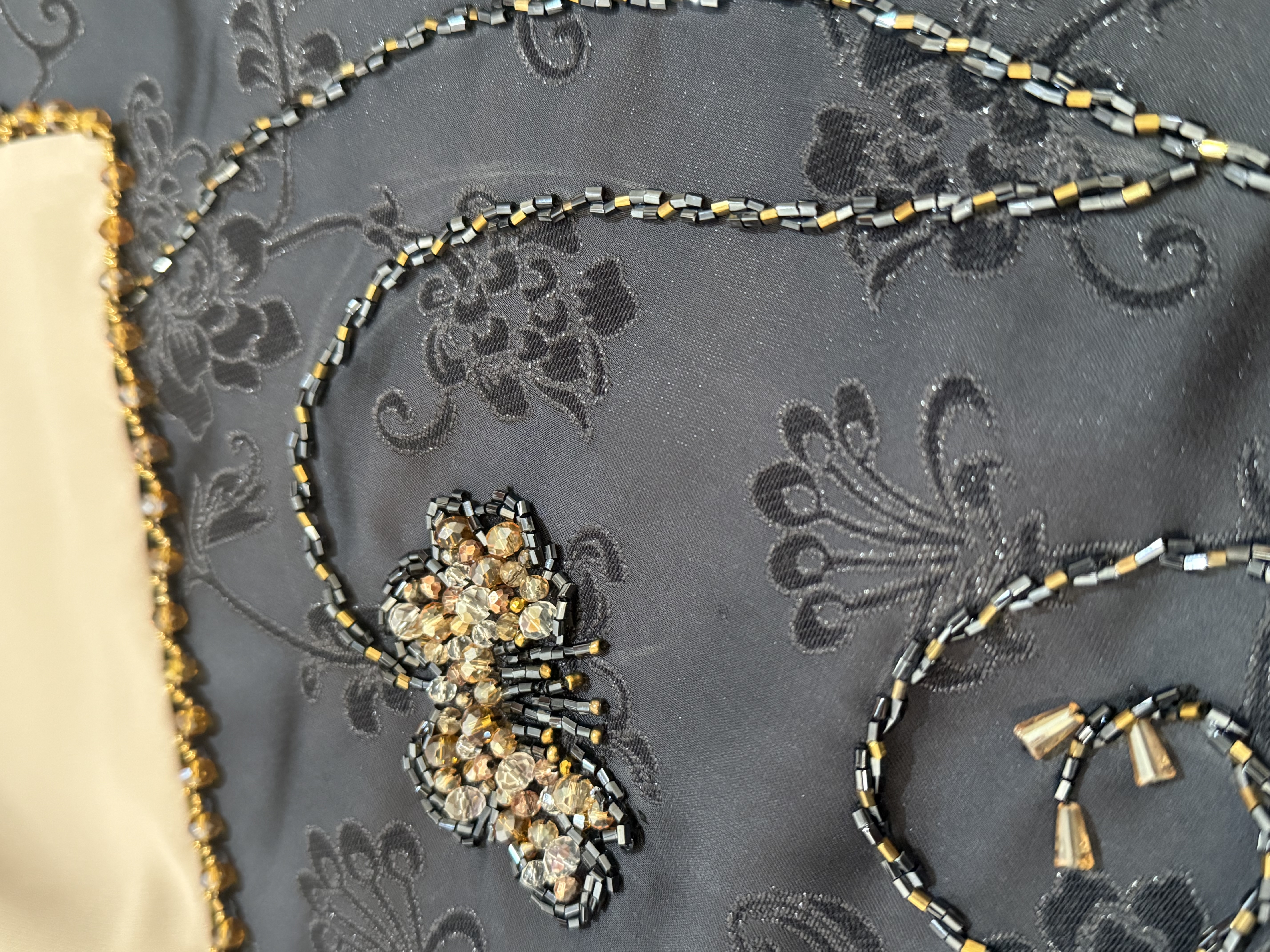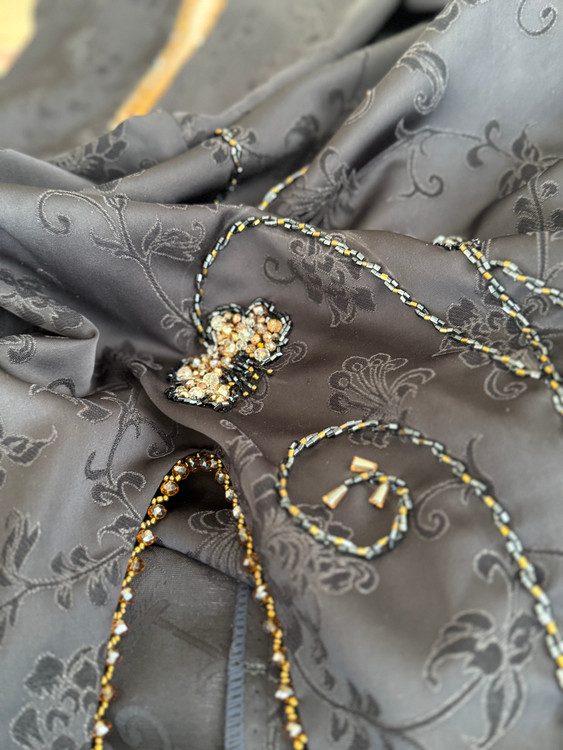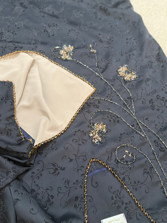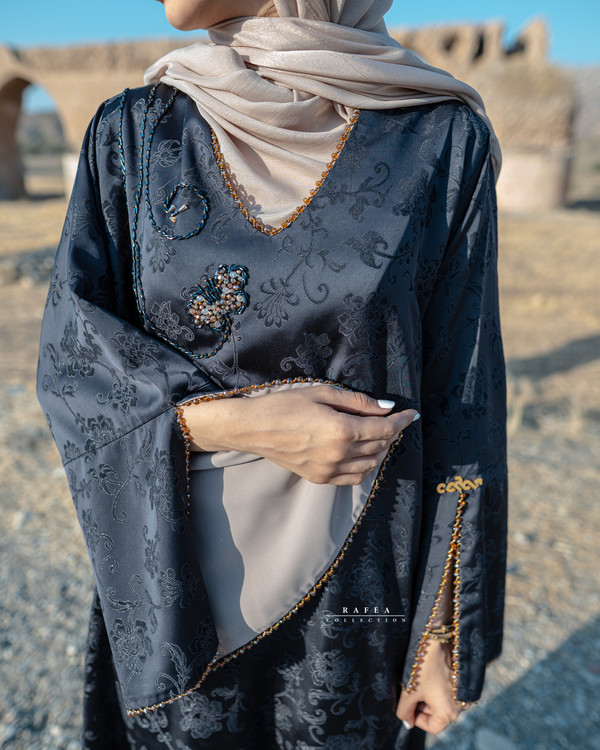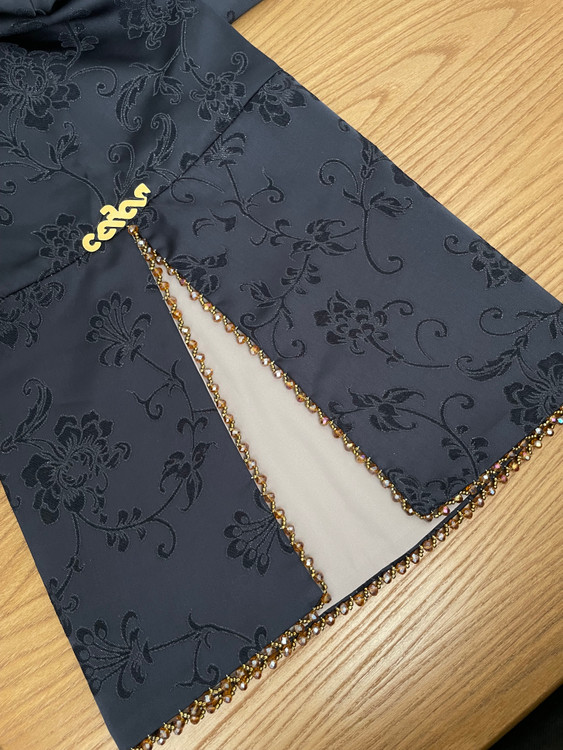 یک عبای جلوبسته با جواهر دوزی بسیار شکیل در ناحیه یقه و لبه ی استین و جلوی سینه است.طبق قد مورد نظر شما دوخته خواهد شد♥️🙏