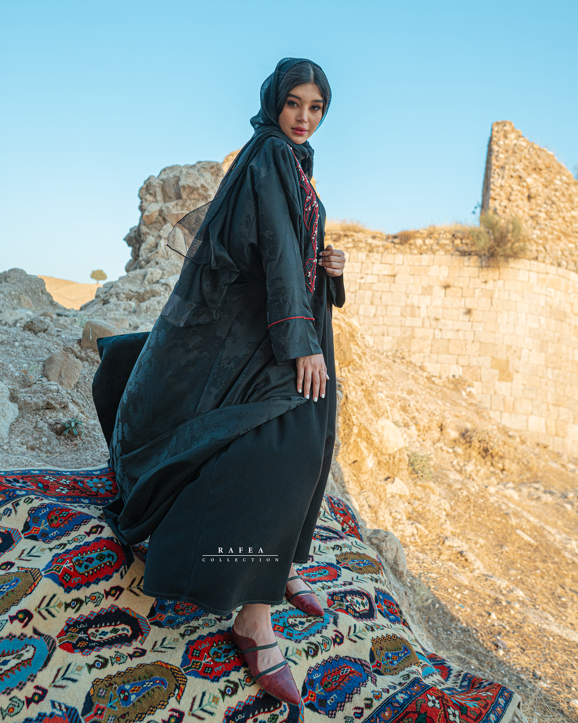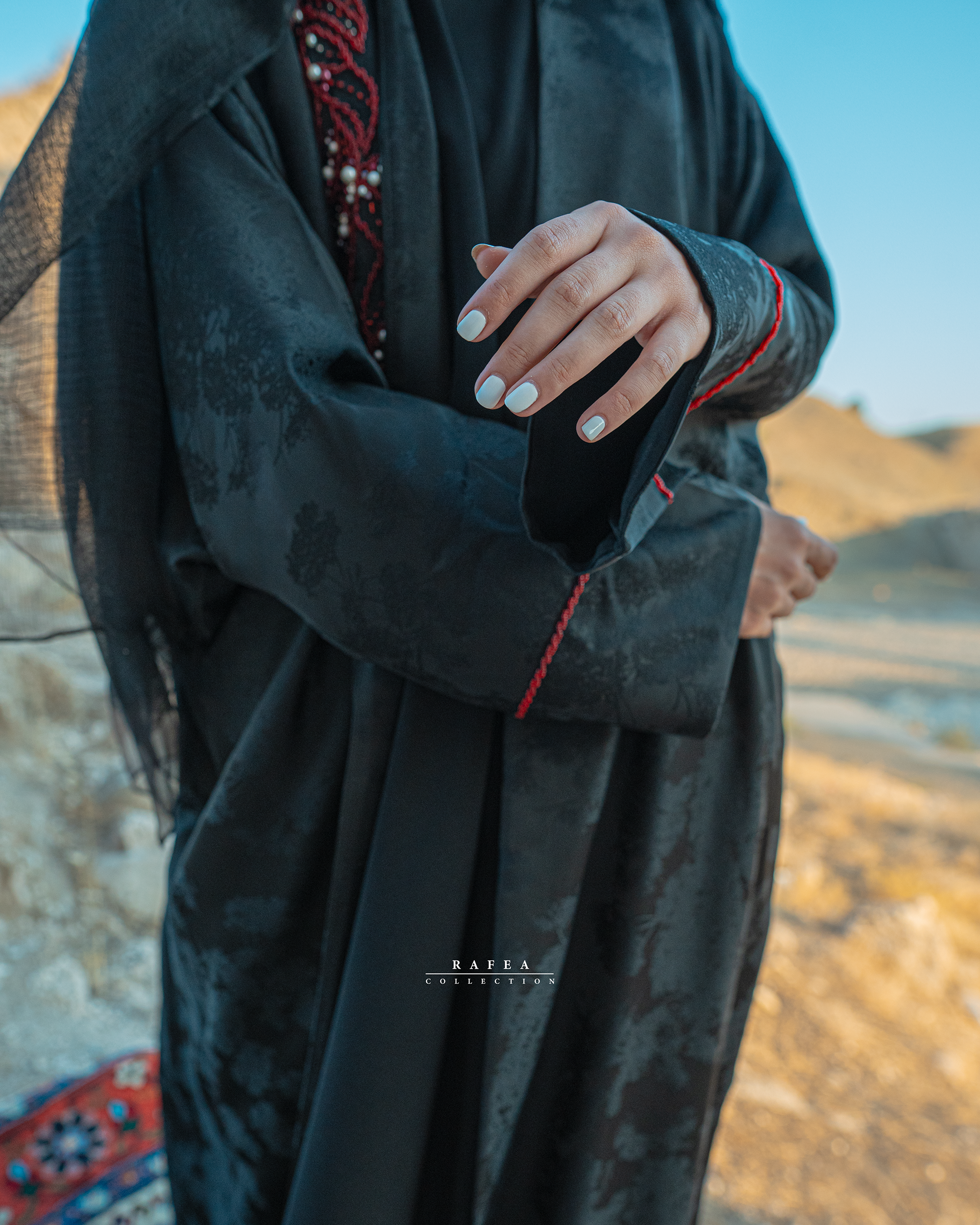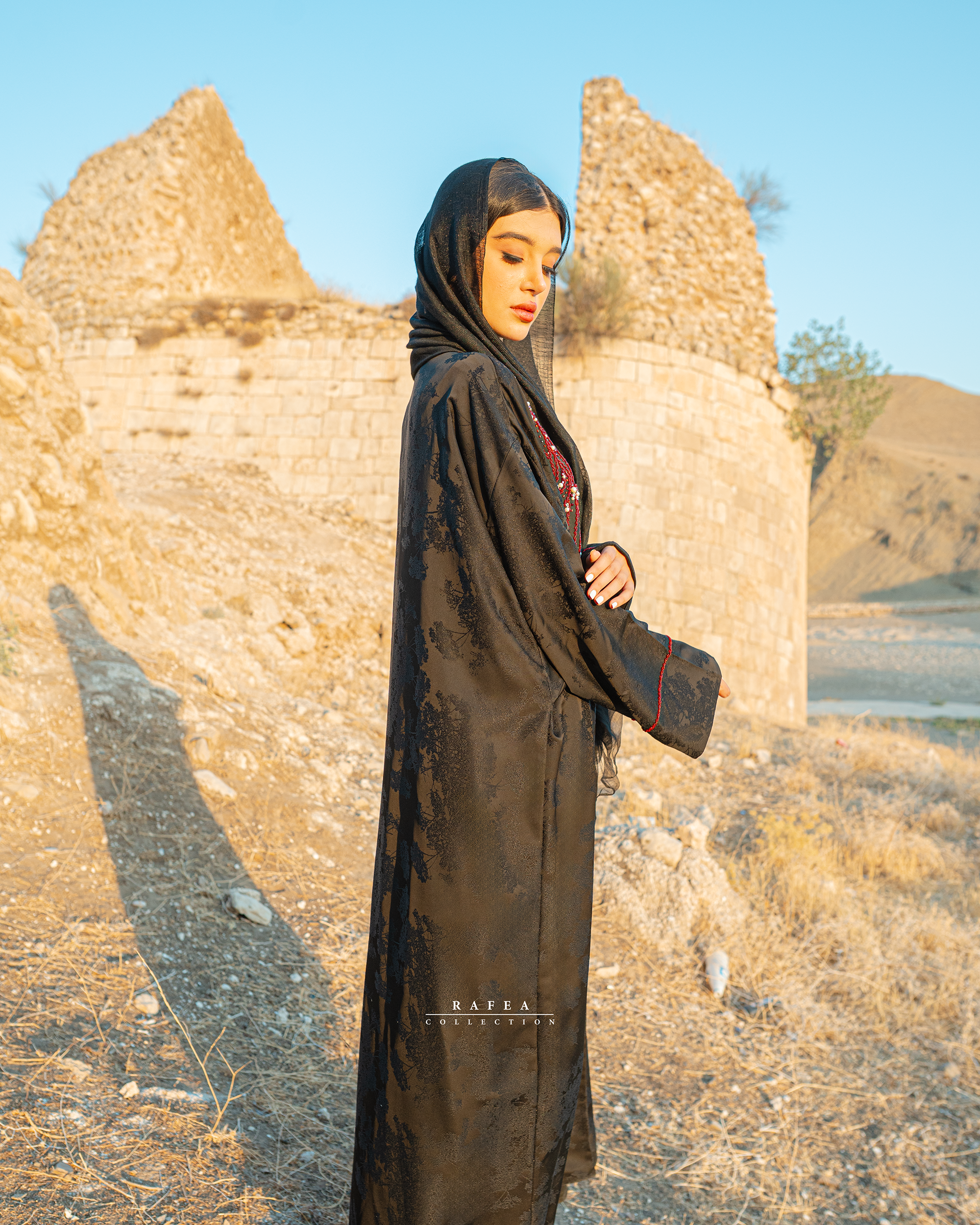 عبای ماه دیس با پارچه ی ژاکارد مشکی دوخته شده که بسیار نرم و خوش حالته و زیر عبا آستری دوخته شده شده از جنس حریر درجه یک مشکی ،برای تنوع و زیبایی در طراحی ،روی این عبا در قسمت جلوی سینه جواهردوزی انجام شده که قرمزی جواهردوزی روی رنگ مشکی عبا بی نظیر است